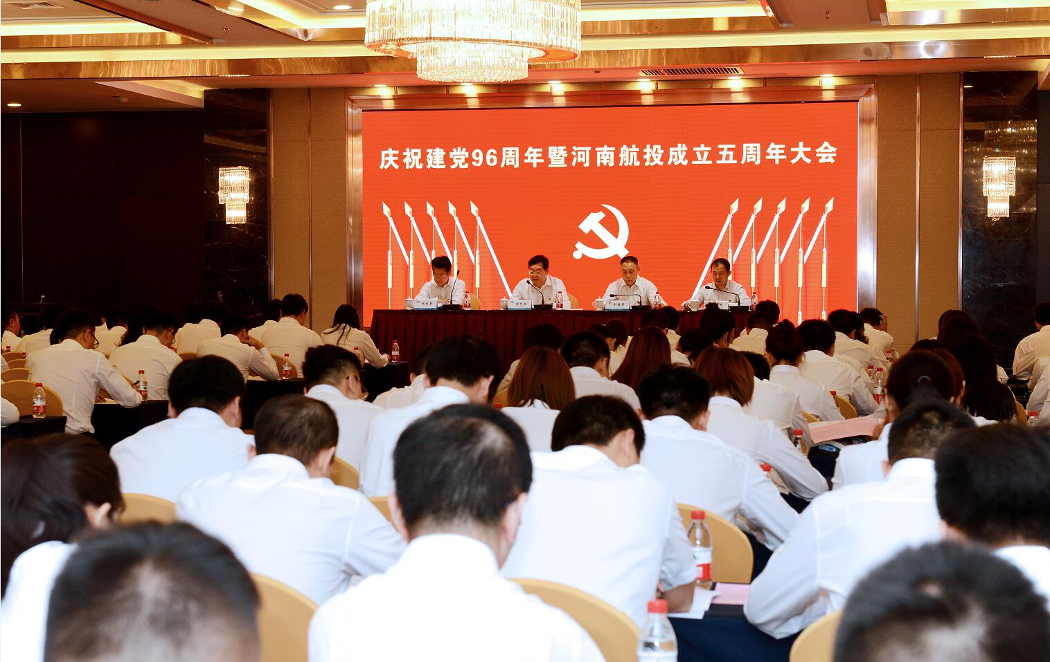 7月1日,慶祝建黨96周年暨河南航投成立五周年大會在鄭州隆重召開。