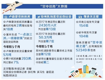 2017年6月14日,國家主席習(xí)近平在會見盧森堡首相貝泰爾時,明確提出要深化雙方在“一帶一路”建設(shè)框架內(nèi)金融、產(chǎn)能等合作,中方支持建設(shè)鄭州—盧森堡“空中絲綢之路”。